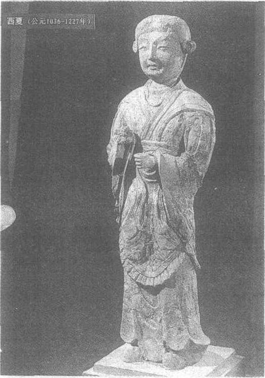 | 释义 | 彩塑供养天女像 彩塑供养天女像西夏。高67厘米。甘肃省敦煌县莫高窟第491窟西龛南侧。此为释迦佛身旁的一尊供养天女。头顶发平直,两侧梳垂鬟髻。面庞方圆,颧骨外突,细目小唇,笑意挂面,流露出朴实而稚气未脱。身穿袿衣,脚蹬翘头履,身体各部位比例适宜,造像风格具有西夏的典型性。