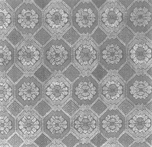 清。长287厘米,宽161厘米。北京故宫博物院藏。僮锦,又叫“壮锦”、“绒花被”。是用棉或麻的股纱作经线,以不加捻或者微捻两种彩纬织入起花,在织物正面和背面形成对称花纹,并将地组织完全覆盖;还有用多种彩纬挑出,纹样组织复杂的几何形图案,其色彩鲜明,对比强烈,是浓艳粗犷民族艺术手工品。此件僮锦毯是清代乾隆年间的产品,纹样是在菱形骨架内填以龟背花朵,其花是用黄、木红、肉粉、湖绿、绿、黄白、雪灰、灰等彩纬丝与棕色棉经、棉纬交织成纵6厘米、横7.8厘米的花朵。花样的形状虽雷同,但其上下左右色彩变换却较为自由。毯边用丝绒与棉纬交织成纵8.5厘米、横10.5厘米的回纹花朵。经纬密度,棉经每厘米10根,棉纬每厘米10根,丝纹纬每厘米8根,经纬、棉经、棉纬直径为0.4至0.5毫米,丝纬直径为0.8至1.5毫米。僮锦质地厚实,耐磨力强,光泽美观,适于做被面、褥面、背包、挂包、围裙、台布等,既是一种工艺美术装饰织物,又具有强烈的民族风格。