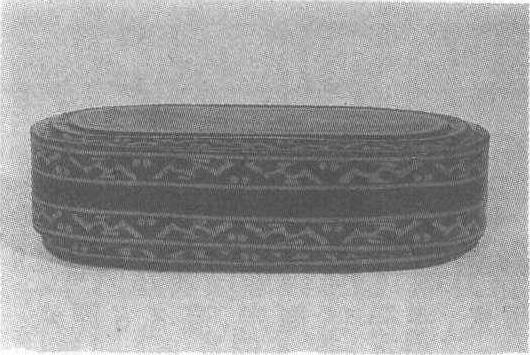 秦。盛梳妆用品器具。长28厘米,宽12.3厘米。湖北省云梦县睡虎地34号秦墓出土。湖北省云梦县博物馆藏。卷木胎,平底,天覆地式。内髹朱漆,外在黑、褐色漆地上绘朱漆纹饰。盖面在褐漆地上绘舞龙、飞鸟、卷云。盖、底内各有一针刻“四”字,盖外壁还有针刻“大女子姕”四字。据综合研究考证,此为漆器作者的名字。