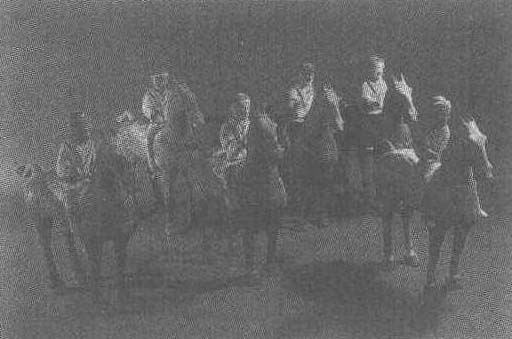 西汉。俑高30—40厘米。1965年陕西省咸阳市杨家湾出土。此兵马俑群分布在汉高祖刘邦长陵一个陪葬墓前的随葬坑中。据推测墓主可能是当时的高级将领。骑士俑、文武侍从俑、乐舞俑及杂役俑均彩绘,共计2584件,是所见汉墓出土陶俑最多者。全部人马组成齐整、阵容雄伟。与秦兵马俑坑相比,战车数量减少,骑兵得到加强,表明骑兵在西汉前期有巨大发展,成为有独立战斗力的兵种。塑造技艺甚高,人、马形神兼备。战马塑造得挺拔神骏,昂首嘶鸣,如临沙场决战。武士俑手中原均持兵器,身披各式黑色铠甲,神态生动自然,其衣甲、武器以至头巾和发式亦描绘得十分细致。舞乐俑作舞蹈、奏乐等不同姿态。俑的制作采用横制与手塑相结合的手法,以捕捉对象的特点和神韵见长,是西汉初期最生动而有气势的俑群。