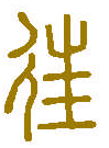 另见:阴间 坟墓 ☚ 人死 人死的婉称 ☛ 往wǎng;wàng(一)于两切,上养。 ❶前去,前往。《易·系辞》:“寒~则暑来,暑~则寒来。” ❷送去,送致。曹植《与杨德祖书》:“今~仆少小所著辞赋一通。” ❸昔时,过去。《易·系辞》:“夫《易》,彰~而察来。” ❹死,死者。《左传·僖公九年》:“送~事居。” (二) 于放切。去漾。归向,向往。《老子》:“执大象,天下~。” 往徃wǎng❶去,到。如:往返,来往;开往上上海。 ❷朝, 向。如:往东走;往前看。 ❸过去。如:往年,往事;既往不咎。 ❹往往,常常。如:这些小事往往不被人们注意。 往 往wang副词。(一)用于动词前,表示动作前往的方向,相当于“前往”“前去”等。如: ❶惠子相梁,庄子往见之。(《庄子·秋水》“往”句:惠子做了魏国的宰相,庄子前往拜见他。) ❷女其将卫士而往卫冢乎? (《谷梁传·僖公十年》“往”句:你带着卫兵前去保卫陵墓吧! ) ❸灵公心怍(zuo)焉,欲杀之,于是使勇士某者往杀之。(《公羊传·宣公六年》“往”句:晋灵公心里惭愧,想杀死他,因此就派勇士某某前去刺杀他。) (二)“往往”用于动词前,表示动作的频繁与范围之广,相当于“处处”“到处”等。如: ❹旦日,卒中往往语,皆指目陈胜。(《史记·陈涉世家》“往”句:第二天,士卒中处处窃窃私语,同时都指着看陈胜。) ❺秋七月,地震,往往涌泉出。(《汉书·武帝纪》“往往”句:秋天七月,发生了地震,到处有泉水涌出。) ☚ 徒 妄 ☛ 往[徃]wǎnɡⅠ (去) go: 来 ~ come and go; 寒来暑 ~ as summer goes and winter comes Ⅱ (过去的) past; previous: ~ 昔 in the past; 一如既 ~ just as in the past Ⅲ (向) toward; in the direction of; to: ~ 天上看 look up to the sky; ~ 东走去 go in an eastward direction; 昨天有一架飞机飞 ~ 大连。 An airplane started for Dalian yesterday. 另见 see also wànɡ。 ◆往常 habitually in the past; as one used to do formerly; 往返 go there and back; come and go; arrive and depart; journey to and fro; 往返曲折 twist and turns; 往返徒劳 run back and forth in vain; make a trip in vain; make a futile journey; 往复 move back and forth; reciprocate; contact; intercourse; 往还 keep in contact; have social dealings with; contact; dealings; intercourse; 往来 come and go; to and fro; back and forth; contact; dealings; intercourse; 往来驰骋 gallop to and fro; 往年 (in) former years; 往日 (in) former days; (in) bygone days; 往日无冤, 今日无仇 I have never hated you in the past nor do I bear any hatred toward you today.; I had no enmity with you before nor any need for revenge.; In the times past I had no quarrel with you, I have never done you ill.; There's never been any bad blood between us.; With you I have not had any hatred for a thousand days and I have no ill-will toward you this day.; 往事 history; past events; the past; 往事感怀 recall past events with deep feeling; 往事回想 be redolent of the past; 往事缅怀 muse over past memories; 往事如烟 Past events have faded like a puff of smoke.; 往往 often; frequently; more often than not; 往昔 in the past; in former times; 往者不可谏 As to the past reproof is useless.; It is no use crying over the spilt milk.; The past is past reproof.; Things past cannot be reconciled.; 往者不可追 That which is past is lost and irrecoverable.; What is done cannot be undone.