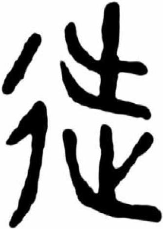 tú形声,小篆从辵,土声,本义为步行,引申为步兵、跟从的人、弟子、有某种宗教信仰的人、某种人或某一派的人(多含贬义)、服劳役的人、没有凭借的、空的、副词(相当于“仅仅”“白白地”)等。徒 (tú)步行也。从辵,土聲。 徒 金 篆 隶tú【析形】形声字。古文字形从辵( chuò),土声。辵由彳(行的一半,“行”本义道路)、止(趾的本字)组成,从辵,表示与行走有关。现代汉字“徒”与“徙”形近,前者声符为土,后者声符为止。 【释义】《说文》:“步行也。”本义是在道路上步行。徒是不借助任何交通工具而行走。先秦战争是车战,每乘兵车上有甲士3人,后跟随步兵72人即徒。由此引申为随从、徒众、空等义,如官府的随从叫[徒役],老师的学生叫[徒弟],信教的人叫[教徒]、[信徒],不用任何工具叫[徒手]等等。[室徒四壁]犹言室内空无一物,喻贫穷。 【shape analysis】It is the pictophonetic character. In ancient character it is related to辵( chuò,walk) in meaning and sounds like the pronunciation of土(tǔ, earth). 【original meaning】 Walking on road. |