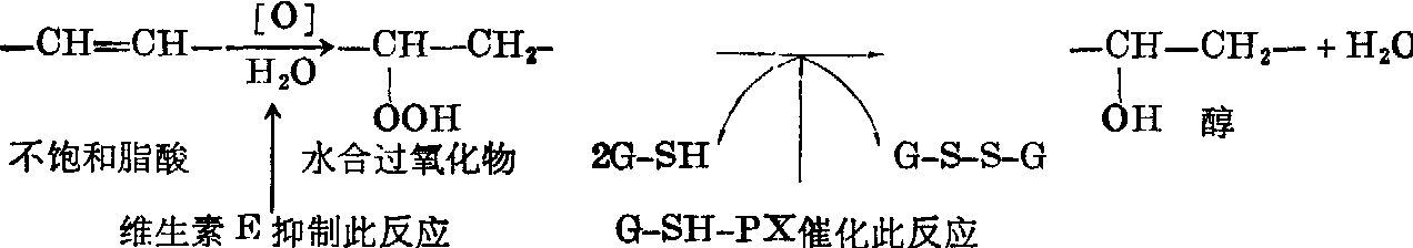 预防地方性甲状腺肿,可经常食用含碘量较高的食物,如海带、蛤蜊之类。无条件经常食用海产食物的内陆山区,以采用食盐加碘的办法最有效。食盐与碘化钾配合的比例以十万份食盐加一份碘化钾较为合宜,即一吨食盐中加碘化钾10g。若每人每日摄入食盐20~25g,则可得碘化钾200~250μg,相当于碘150~175μg (碘化钾含碘76.5%),已能满足机体对碘的需要。若食盐量减少,则食盐中碘化钾量可相应增加。为了避免碘化钾分解散失,最好于食盐中另加四倍于碘化钾量的碳酸钠。此外,有人建议使用碘化油,即将含碘30~35%的碘化油用食油稀释至6万至30万倍,供居民食用。 缺碘并非是引起地方性甲状腺肿的唯一因素。很多事实证明,在缺碘程度相同的条件下,不良的卫生条件、不良的水质、不平衡的营养,均能增加地方性甲状腺肿的患病率,特别是不平衡的营养。因此在补充碘预防的同时,尚应注意改善流行地区人民的卫生状况,并全面改善营养。 氟 氟主要在胃部吸收。摄入一定量的氟离子可以预防龋齿,因氟能取代珐琅质中部分羟磷灰石的羟基,形成氟磷灰石(Ca10(PO4)6(OH)2+2F—→Ca10(PO4)6F2+20H-),此物不易被酸溶解,可防止龋蚀。 摄入氟量过低,不仅影响牙齿,也在一定程度上影响骨胳。低氟区常见的骨质疏松症,若服适量NaF,可使尿钙排出下降,症状减轻,改善骨的组织。 机体摄入氟量过多,可引起氟中毒。首先出现牙齿珐琅质的破坏,牙齿表面原有的光泽逐渐消失,出现灰色斑点,即所谓斑牙症。饮水中氟含量超过1.5mg/L时,该地居民即有发生斑牙症的可能。若长期摄入过量的氟,尚可出现骨胳和肾脏的损害。 人体氟主要来源于饮水。氟的供给量主要依据既能预防龋齿又不造成氟中毒为依据。据流行病学调查,饮水氟含量为1mg/L或稍高,儿童龋齿的发病率较仅含痕量的地区为低。氟过高则可引起斑牙症。因此规定饮水含氟量应为1.0~1.5mg/L,最高不得超过2.0mg/L。 食物中一般也含有少量氟,人体从日常膳食中所摄取的氟约为0.8~1.6mg;加上来自饮水的1.5mg(以每日饮水1500ml计),则人每日摄入总氟量约为2.3~3.1mg。该量能充分满足人体一日的需要而又不致引起中毒。锌 锌是体内很多金属酶组成成分或酶的激活剂,现已知与锌有关的酶不下20种,如碳酸酐酶、胸腺嘧啶核苷激酶、碱性磷酸酶、乳酸脱氢酶等。锌是RNA聚合酶和DNA聚合酶呈现活性所必需者,近年来已证明锌主要参与DNA的合成,对RNA和蛋白质合成是其间接影响。人体缺锌表现食欲不振、生长停止、性幼稚型、自发性味觉减退和创伤愈合不良等,孕妇缺锌可出现胎儿畸形。 锌的吸收与铁相似,也受肠道粘膜细胞含锌量的调节。锌主要存在于骨胳和皮肤(包括头发),头发中含锌量可反映膳食中锌的长期供给水平。锌主要经肠道排出,少量由尿排出。 成人锌需要量每日约2.2mg,若混合膳平均锌吸收率按20%估计,成人每日供给锌15mg为宜。 高蛋白食物普遍含锌较高。海产品是锌的良好来源,奶类和蛋类次之,蔬菜水果一般含锌较少。 铜 成人体内含铜总量约为80mg,分布于所有组织中,以骨胳和肌肉中最多。铜是体内很多金属酶的组成成分,已知与铜有关的酶类至少有11种,如铜蓝蛋白(又称铁氧化酶)、精胺氧化酶、细胞色素氧化酶、超氧化物岐化酶、酪氨酸酶、多巴-β-羟化酶、尿酸酶、赖氨酰氧化酶和苄胺氧化酶等。这些酶类与铜在体内的利用、生理氧化、结缔组织形成以及超氧化物游离基的分解等都有密切关系。 人体铜缺乏可引起儿童缺铜性贫血。实验动物缺铜,可出现贫血、慢性腹泻、脱钙等。铜的吸收机理与铁和锌基本相似,借助于肠粘膜细胞中的载体蛋白, 铜的摄入量成人每日2~3mg,过量铜可引起中毒。一般食物均含铜,其中含量较丰富者有肝、肾、甲壳类、坚果、葡萄干及干豆等,奶类含铜很少。 铬 六价铬有毒,机体可把外来的六价铬还原为三价铬,而不能将三价铬氧化成六价铬。植物体内的铬皆为三价。在影响葡萄糖耐量作用中,铬可能是胰岛素的一个辅助因素。通过胰岛素作用,尚可影响氨基酸在体内的转运。铬与脂质代谢也有明显关系,如患高胆固醇血症的大鼠,饮水中加铬后,其血清胆固醇浓度显著下降。铬每日由尿排出约5μg,而膳食中铬的平均利用率约为10~25%,故每日供给量能达到20~50μg即可满足生理需要,加上安全系数供给量可为0.05~0.2mg。铬最好的来源是啤酒酵母、肉制品、乳酪及全谷,蔬菜中铬利用率较低。 硒 已知生物界有三种酶的催化反应需要有硒参加: ❶细菌中的甲酸盐脱羧酶; ❷梭状芽胞杆菌的甘氨酸还原酶; ❸哺乳动物红细胞的谷胱甘肽过氧化物酶 (G-SH-PX)。 在硒缺乏的动物体内,红细胞的谷胱甘肽过氧化物酶的活性很低。此酶的作用是通过还原型谷胱甘肽保护红细胞以防止过氧化物的堆积。可见硒的主要生理功能就是以谷胱甘肽过氧化物酶的形式发挥抗氧化作用,以保护细胞膜。维生素E也具强有力的抗氧化作用,不过二者发挥作用的阶段不同。维生素E主要是阻止不饱和脂肪酸被氧化成水合过氧化物,而G-SH-PX则是将产生的水合过氧化物迅速分解成醇和水,如下式所示,两个系统可以互相补充,共同完成保护细胞膜的作用。 ![]() 维生素E与谷胱甘肽过氧化物酶的不同反应 动物硒缺乏可造成禽类的生长障碍,羽毛失常和胰腺纤维变性; 大白鼠则表现为生长及毛发发育障碍、眼部病变、生殖障碍和精子形成异常;