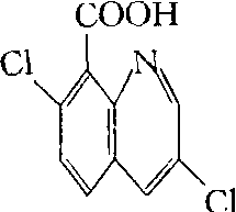 | 释义 | 快杀稗quinclorac有机杂环类选择性除草剂。化学名称:3,7-二氯-8-喹啉羧酸。化学结构式如下。防除稻田稗草特效,对4~7叶稗草效果突出,还能防除鸭舌草、水芹等。能被萌发的种子、根和叶部吸收,表现激素型除草剂的反应,幼嫩叶片失绿、扭曲。水稻移栽田在移栽后,稗草1~3.5叶期使用;直播水稻田、秧田,水稻2~3叶期后,稗草3~4叶期使用。可与苄嘧磺隆、灭草松、敌稗等混用,扩大杀草谱。对人、畜低毒,大鼠急性口服LD50为2 680 mg/kg,急性经皮LD50>2 000 mg/kg,急性吸入LC50大于5.2 mg/L,对鱼、鸟类低毒。