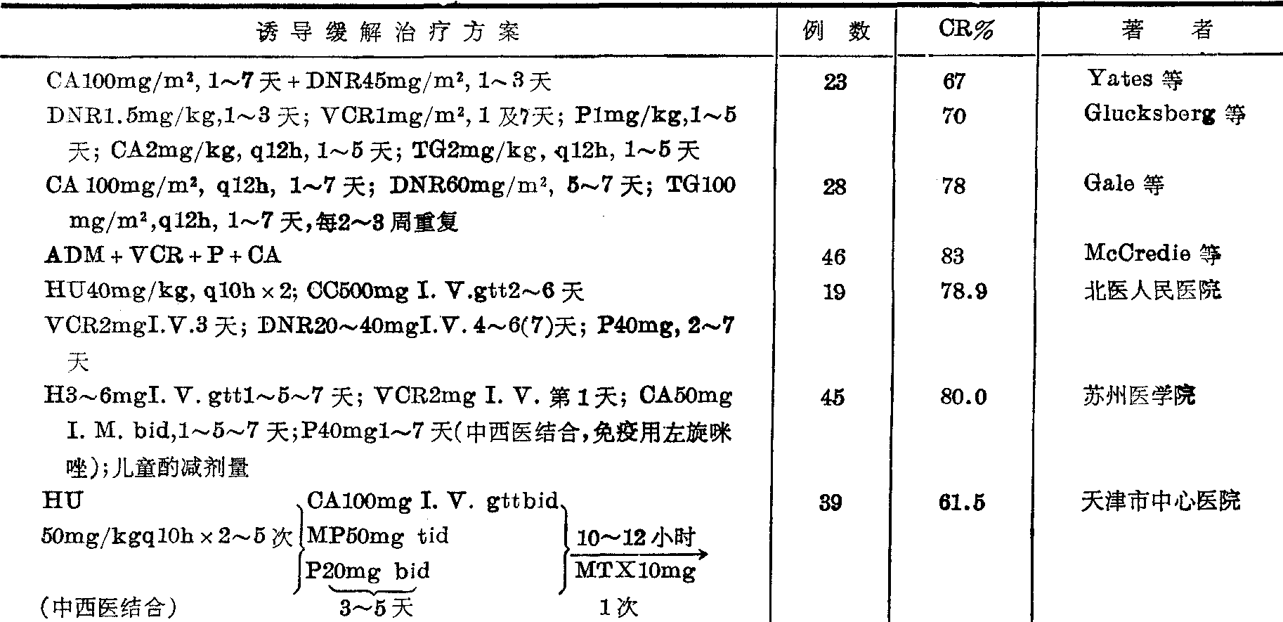 现将近年来诱导完全缓解率较高的报道列于表1。