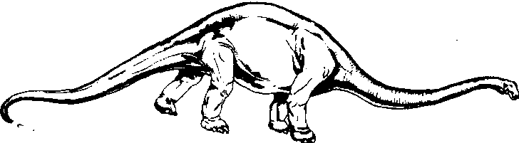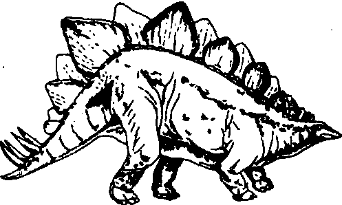 梁 龙 恐龙的另一大类为鸟龙类。植食性,大部分四足行走。牙齿趋于退化,颌骨通常具有喙的构造。下颌骨前方有一齿骨,作为喙嘴的下面部分。此为鸟龙类最显著的特征之一。脚趾末端常有扁平的指但发展出各种光怪陆离的防身设备,如甲板、甲片、棘刺和角。例如剑龙,其背部长有两排交错排列的三角形骨板,据研究,这些骨板具有调节体温的作用。其尾部有长刺,是防身的有力武器。又如角龙类,头部长有各种各样的角。它们遇敌害时,利用其长而锐利的角,靠颈部结实肌肉的支撑和沉重身体所产生的力量向敌人冲刺。鸟龙类也出现在三叠纪晚期,白垩纪末绝灭。