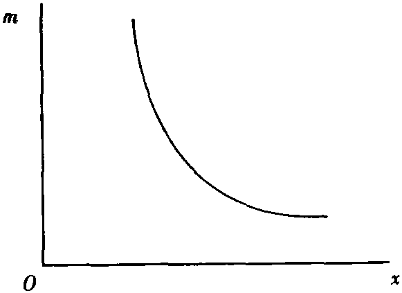 图5 图4和图5中的恩格尔曲线都是向右上方倾斜的,其需求收入弹性为正值,这表明是正常商品的恩格尔曲线。而且,图4、图5中的曲线,分别是必需商品和奢侈商品的恩格尔曲线,前者是凸的,后者是凹的。这两条曲线是表示必需商品和奢侈商品的需求量随着消费者收入的变化而变化的图式。一般地,恩格尔曲线的函数形式是: