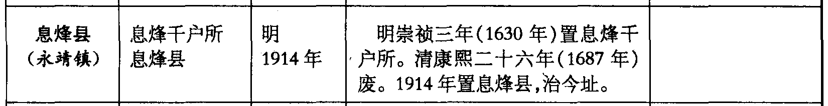 息烽县(永靖镇)息烽千户所息烽县明1914年明崇祯三年(1630年)置息烽千户所。清康熙二十六年(1687年)废。1914年置息烽县,治今址。