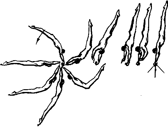单杠摆动基本技术之一。技术要点:前摆经杠下垂面的技术同悬垂前摆。当摆过杠下垂面后,应以脚面用力向前上方摆起,方向宜稍向转体一侧。当肩轴上升至杠平面后,两臂向头后领杠,紧接松右手向左转体,同时左臂配合旋外下顶,随后两手依次握杠,顶肩远伸,含胸紧髋,使人体尽量拉长,总重心远离握点。这一动作在单杠教学训练中的重要性,好似芭蕾舞演员的把竿基本功一样必须经常练习。当练习者掌握了悬垂摆动的技术后,可在助力下进行直接练习。保护者位于杠前转体同侧高位上,托搓髋部,助其转体和换握。熟练掌握后,可进一步要求增大摆幅。最佳技术是前摆接近手倒立前再进行转体换握。