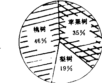 例如, 果园里有三种果树, 其中有苹果树1 400棵,梨树760棵,桃树1 840棵。问各种果树各占果树总数的百分之几?并制成扇形统计图。先算出每种果树各占总数的百分数: