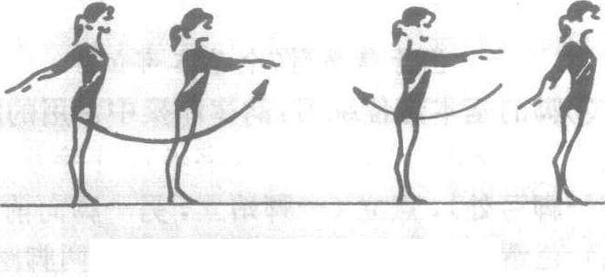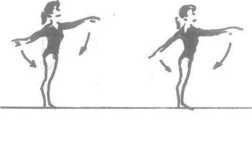 教学重点 先原地做两臂各种摆动动作,基本掌握后可结合两腿弹动及移重心等配合进行练习。