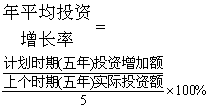 ❷年平均投资增长率,即计划时期(五年)投资增加额与上个时期(五年)实际投资额的比率。计算公式为:
