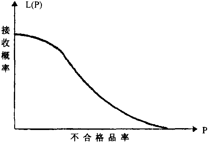一个抽样检验方案(N,n,c)确定后,产品批的接收概率L(P)(确定产品批为合格的概率)与产品批的实际质量水平间的关系曲线。抽检特性曲线通常也称为OC曲线,曲线所反映的函数关系称为抽样检验方案的抽检特性函数。不同的抽检方案有着不同的抽检特性函数,也就有不同的OC曲线,根据抽检特性曲线可以知道与某一不合格品率相对应的批被接收或被拒收的概率。抽检特性曲线反映了抽检方案对各种质量的产品批的辨别能力,是制定和评价抽检方案的基本工具。典型的抽检特性曲线如图9-5所示。