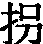 另见:猛烈 碰撞 ☚ 撞击 舂捣 ☛ 拐转折;骗;瘸,跛:~弯/~角/~带/~骗/~诱/一瘸一~。以上不作“柺”。 拐 208.拐(p1239.3)义项四,书证题作: 《古今杂剧·元·关汉卿<鲁斋郎>一》。 按:丛书误称。《鲁斋郎》剧不入元人无名氏辑《古今杂剧》三十种,而入于明人赵琦美辑《脉望馆钞校本古今杂剧》二百四十二种; 又入明人臧懋循辑《元曲选》百种、明人陈与郊辑《古名家杂剧》六十五种。 ☚ 抽头 拈斤播两 ☛ 拐柺guǎi❶转弯。如:拐弯,往左拐。 ❷用欺骗手段弄走。如:拐卖,拐骗。 ❸脚走路不稳不正。如:伤员一拐一拐地往前走。 ❹拐杖。 拐[Ⅰ❶柺]ɡuǎiⅠ ❶ (走路拄的棍子) crutch;cane;walking stick:一位老人在拄着 ~ 走路。 An old man was walking with a cane. ❷ (说数字时用来代替 “七”) a substitute for “seven” ❸ [方] (弯曲处;角) crook;corner:墙 ~ corner of a wall Ⅱ ❶ (转变方向) turn:向右 ~ turn to the right; 当他从大路 ~ 进一条小胡同时,开始下起小雨来。 A thin rain began to fall as he turned from the high road into a narrow lane. ❷ (拐骗) swindle;make off with:~ 款潜逃 abscond with funds ❸ (骗走;非法引走) abduct;kidnap:警察抓住了那个企图 ~ 走这男孩以便勒索赎金的家伙。 The police caught the man who tried to abduct the boy for ransom. ❹ (用臂肘碰) impact by an elbow ❺ (瘸) limp;be lame:一 ~ 一 ~ 地走 limp along;walk with a limp ◆拐脖儿 elbow (of a stove pipe); 拐点 point of inflection;point of inflexion;knee point;break point;kink;spinodal;inflection point;knee;yielding point; 拐钉 dog nail; 拐度 flexion; 拐棍 walking stick; 拐角 corner;turning; 拐卖 abduct and traffic; 拐卖妇女业 white slavery; 拐骗 swindle;abduct; 拐弯 turn a corner;turn;turn round;pursue a new course;corner;turning; 拐弯抹角 equivocate;a roundabout way of talking;beat about the bush;evasive;go beating about [around] the bush;speak indirectly;turn a corner here and there;talk about things without giving a clear answer;talk in a roundabout way;wamble; 拐枣 {植} honey raisin tree;honey tree; 拐杖 crutch;walking stick;crosier;crozier; 拐子 [口] cripple;abductor;swindler;I-shaped reel 拐staff;stick 拐guǎi❶ 拐弯抹角 拐柺; ; guǎi(8画)