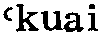 拐2guai3(形)❶错;差:你听爹妈的话不得~。(十人选328)丨一个尖子,不偏不~,刚好踢在眉心。(梨64) ❷(~了)坏,糟糕:不溜不输,一溜倒~了,老赵晓得,一定认的了我有毛病,所以才畏罪潜逃。(大一123) 拐kuɛi53❶方向改变及方向改变的东西: 路~弯,~尺。 ❷对人凶狠: 这个人~得很。 ❸腿跛: ~子。 ❹拄杖: ~杖。 ❺骗: ~带人口。本字为乖。张舜徽云: “今语称人之性行恶劣者为乖,音转为拐,即乖之引申义也。凡云拐角、拐杖皆当从乖为本字,拐骗则当以诖为本字。” 拐〔guai〕jid weax: 从那边~过来。zhaos ghaot yib jidweax guat lol. 拐棍 〔gua gun〕ghob blad nhas. 拐角〔guaijiao〕ghobniox:在房子~处。nibghobnioxbloud. 拐骗〔guaipian〕jidghous:小孩被人~走了。debdebzhaosnexjidghoussheubmongljul. 拐弯〔guaiwan〕jidngguand:他~到那边去了。wudjidngguandgheatghaotyibmongljul. 拐弯抹角〔guaiwanmojiao〕radbleidradblud:说话~。puddutradbleidradblud. 拐杖〔guaizhang〕ghobbladnhas. 拐肘〔guaizhou〕bidbaodxid. 拐子〔guai·zi〕ghobnexliax. 拐ㄍㄨㄞˇguǎi三3225①动转动。中原官话。河南〖 〗。李准《小康人家》:「春妞这时有劲地~着辘轳,显出浑身是劲。」②动碰撞;顶。⑴北京官话。北京〖 〗。汽车把那自行车~躺下了。⑵胶辽官话。山东莱阳、牟平。⑶西南官话。四川成都〖 〗。小张端起满满一杯酒,谁知被小李一~,浪出来不少。李劼人《大波》第三部第三章:「吴凤梧用手肘把他一~道:『这里是又三先生的码头。』」③动走路时缓慢地扭动。⑴北京官话。北京〖 〗。一走一~‖那个小脚儿女人哪儿就~到啦!⑵西南官话。云南昭通。姜亮夫《昭通方言疏证・释词》:「昭人谓小脚行路曰跬,音变如~。」④动打横;打岔。⑴兰银官话。甘肃兰州〖 〗。⑵江淮官话。江苏涟水〖 〗。⑤动刮削。江淮官话。湖北浠水〖 〗。把饼子~一块下来。⑥动绞,纺,摇,提。⑴冀鲁官话。河北〖 〗。一个人在院子里~水浇园‖老太太在门口~线。⑵中原官话。陕西商县张家塬〖 〗。她正在~线哩。⑦动抱。粤语。广东阳江〖 〗。细路小孩~在怀里睏着了。⑧动说。中原官话。陕西。1984年第8期《新华文摘》:「他妈脸一抬:『胡~些啥,媳妇不寻了,日子不过?』」⑨动比赛(多用来跟小孩说话)。晋语。河南安阳:冰冰快喝饭,咱俩~吧?瞧谁拐过谁!⑩动蹬。西南官话。四川自贡〖 〗。马~了。⑪动挎。东北官话。东北〖 〗。《高玉宝》:「胳膊肘~着一个针线筐子。」1981年第6期《新华文摘》:「新婚第二天,男人去打短工,她又~起要饭篓。」⑫动搅和。中原官话。江苏徐州〖 〗。菜叫馊豆腐~坏了。⑬形错;差错。西南官话。四川成都〖 〗。多学多问少出~‖药吃~了性命攸关。李劼人《大波》第二部第四章:「千万不要因为我把话说~了,多我的心哟!」贵州清镇〖 〗、沿河〖 〗。他弄都弄~了。⑭形坏;糟糕。⑴中原官话。甘肃天水〖 〗。⑵江淮官话。湖北红安〖 〗。⑶西南官话。湖北武汉〖 〗、天门〖 〗、随州。四川成都〖 〗。~了!钥匙锁到屋头去了。马识途《夜谭十记・亲仇记》:「他一听张婆在喊救命,知道事情~了。」贵州沿河〖 〗。~了,我的皮包落丢了。贵州清镇〖 〗。云南新平〖 〗。这事情着老赵整~了。云南玉溪〖 〗、腾冲〖 〗。⑷湘语。湖南长沙〖 〗、双峰〖 〗。⑸赣语。湖南耒阳〖 〗。湖北蒲圻〖 〗。要分出好人~人。⑮形阴险;歹毒。⑴中原官话。陕西商县张家塬〖 〗。这人心里~的很!⑵西南官话。云南玉溪〖 〗。那个人最~了,你要小心点!云南新平〖 〗。⑯形性情乖僻,难以相处。⑴冀鲁官话。山东聊城〖 〗。那人~着哩‖你怎么这么~啊!⑵中原官话。江苏徐州〖 〗。她老婆婆才~‖又~又坏。⑶江淮官话。江苏淮阴〖 〗。◈ 端木蕻良《钟》:「字没有孩子认得多,脾气倒比孩子~得多。」⑰形蛮横,不讲理。赣语。江西宜春〖 〗。里只后生蛮~。⑱形怪;味不正。中原官话。江苏徐州〖 〗。这菜有一点儿~味。⑲形(处世)圆滑。赣语。江西新余〖 〗。该只人好~‖~绝里。⑳形松懈。吴语。上海崇明〖 〗。㉑形调皮。江淮官话。湖北红安〖 〗。㉒名岔子;问题。西南官话。四川成都〖 〗。这个人做工作不细心,天天出~。克非《春潮急》三四:「徐二鸡公吓得打抖,说:『糟!糟!要出大~。』」㉓名踝骨。北京官话。北京〖 〗。㉔名骨与骨相接处。吴语。上海崇明〖 〗。㉕名青蛙。赣语。江西。黄砾明《追寻》:「用山民们的话来说,是『蛇有蛇路,~有~路,癞蛤蟆没有路也会蹦三步。』」㉖名肘,肘关节。西南官话。四川。《四川文艺》:「胳膊~撞过来。」㉗名数码「八」的代称(市侩隐语,通用于粮食牙行等场所)。吴语。安徽芜湖。民国本《芜湖县志》:「今市侩隐语通用于粮食牙行者,一由,二申又名中,三人,四工,五大,六王又名陵,七主又名柴,八井又名~,九羊,十仍为由。」㉘名指买卖牲口时为「五」(如五、五十、五百、五千…)的价格。晋语。山西忻州〖 〗。   拐❶〈隐〉清末以来湖北武汉纺织业指数目五。参“明、暗、聚、宽、拐、变、夜、间、梢”。 ❷〈隐〉清末以来四川东部畜牧市场经纪人指数目五。参“逗、耳、太、查、拐、捞、季、条、敲、梢”。 ❸〈隐〉清末以来四川成都畜牧市场经纪人指数目五。参“收、抬、找、查、劳、条、敲、稍、海”。 ❹〈隐〉旧时中原地区江湖诸行指数目千。 拐*柺❶ɡuǎi