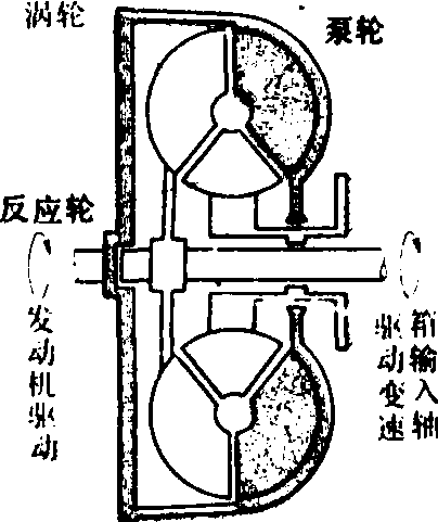 图4 液力变矩器 动液力传动 其核心部件是液力变矩器(图4)。在闭合的循环通道内布置泵轮、涡轮及反应轮,发动机驱动泵轮,泵轮叶片使油液高速转动,发动机的机械能转换成液体的动能,高速转动的油液冲入涡轮,使涡轮转动,液体动能转换成机械能,涡轮与变速箱输入轴联接,输出扭矩。从涡轮出来的油液经反应轮流回到泵轮,反应轮固定不转动,它承受反作用扭矩,使涡轮的扭矩大于泵轮的扭矩。 动液力传动具有自动变速作用,随外界负载增大,涡轮转速降低而扭矩增大。但液力变矩器最大变矩比一般不超过5,另外其高效区(效率大于80%)比较窄,通常液力变矩器与有级变速箱组成液力机械传动。 静液压传动 发动机驱动液压泵,液压泵把发动机机械能转换成液体的压力能,压力能驱动液压马达,使液压能转换成机械能,液压马达通过减速齿轮或直接和驱动轮相连,通过改变斜盘的倾斜度改变泵与马达的排量比,进行无级变速(图5)。 差速器 轮式拖拉机的后桥中设置有差速器。在拖拉机转向时,行星轮绕行星轮轴转动,使外侧驱动轮的转速大于内侧驱动轮的转速以适应两者转弯半径不同。 普通差速器的内摩擦力矩较小,左、右半轴齿轮驱动扭矩差值不大,当一侧驱动轮附着力减小而打滑时,拖拉机牵引能力迅速降低,为克服此缺点,通常采用差速锁或防滑差速器。差速锁是用人工操作的啮合套、牙嵌离合器或差速锁离合器。它或使左、右半轴齿轮联锁,或使半轴齿轮与差速器壳体联锁。这样左、右半轴齿轮与差速器壳体以同一转速转动。转弯时,差速锁必须松开。用于前驱动桥的防滑差速器(图6),在工作中锥齿轮的轴向力使摩擦片压紧,提高差速器的内摩擦扭矩,这样左右半轴齿轮扭矩差值增大。