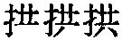 另见:交错 回旋 ︱直 ☚ 直 屈曲 ☛ 拱gǒng居悚切,上肿。 ❶拱手,两手在胸前相合,表示恭敬。《论语·微子》:“子路~而立。” ❷环绕。傅玄《明君》:“众星~北辰。” 〖拱〗 粵 gung2〔鞏〕普 ɡǒnɡ ❶ 拱手,兩手在胸前相合,表示恭敬。《論語.微子》:「子路〜而立。」 ❷ 比喻輕而易舉。賈誼《過秦論》:「於是秦人〜手而取西河之外。」 ❸ 環繞。傅玄《晉睡舞歌明君篇》:「眾星〜北辰。」(北辰:北極星。)