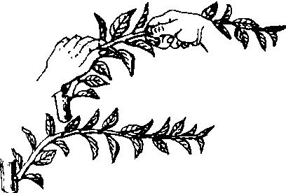 | 释义 | 拿枝nipping又称捋枝。果树修剪中弯曲枝梢的一种具体方法。即用手将直立旺长的枝梢自下而上捋一遍,掌握木质部伤而不断、响而不折为度,拿弯或适当改变其生长方位,再借枝叶本身的重力使保持近水平或下垂状。拿枝后阻碍养分运输,新梢生长缓慢,具有弯枝和扭枝的双重生理效应,有利于花芽形成和促生短枝。2~3年生枝条在初夏树液流动、枝条软韧时进行,当年生新梢在7~8月份当其将完全木质化时进行。