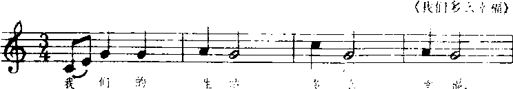 再如:《我们多么幸福》3/4拍,第一拍起唱,则呼吸拍在指挥图式的第三拍上。