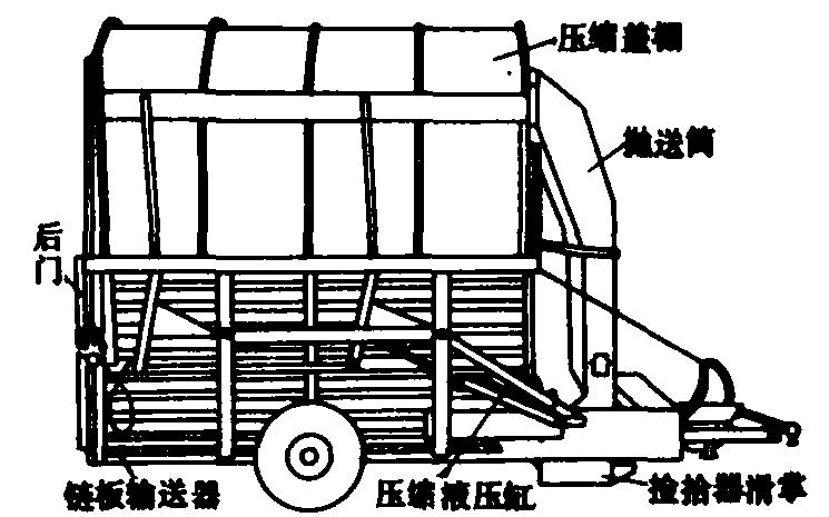 压缩式捡拾集垛机 非压缩式捡拾集垛机由弹性指转筒式捡拾器、螺旋式输送器、切碎抛扔器、集垛车厢、卸垛装置等组成。工作时,弹性指转筒式捡拾器捡拾草条,牧草由螺旋式输送器送入切碎抛扔器,由其切碎后高速抛送入集垛车厢,使草垛具有一定的紧密度,成垛后由卸垛装置卸出。其应用不如压缩式集垛机广泛。 |