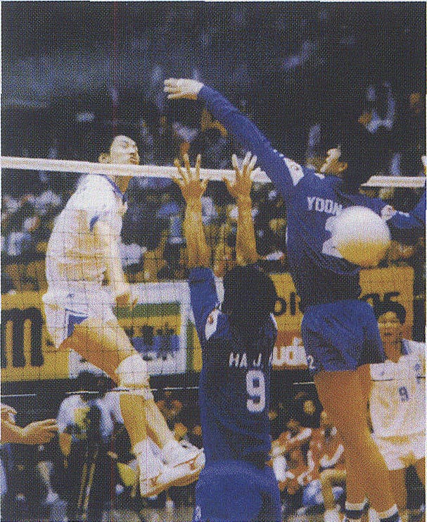 1985年世界杯女排赛中郑美珠在扣球