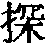 【提示】木,中间是竖,不是竖钩。 *探tàn11画 手部 (1) 伸手进去摸出来: ~取|~囊取物。 (2) 进行尝试或考察以求有所发现: 试~|~测|~险|钻~。 (3) 打听或暗里进行考察: ~听|打~|窥~。 (4) 做侦察工作的人: 侦~|密~。 (5) 看望;慰问: ~视|~病|~望|~亲。 (6) 伸出(头或身体): ~头~脑|~身从书架上拿书。 探 ☚ 挺 揮 ☛ 探tàn小篆从手,从罙(shēn,深本字,从穴、火、求省。象穴中深),罙亦声。声母演变中古翘舌音古归舌尖音,如尚倘、寿涛、失铁例。因深而需探。《说文》即远取义。寻求,探索。如:探源。组词如:探索。又为探测。如:探矿。组词如:探测。引申为侦察,暗中考察。如:探案子|探听。又试探义。如:先探一探口气。转为名词,指作侦察工作的人。如:密探。又引申为探望,访问。如:探亲。组词如:探望。又指头或上体伸出。如:探出头来|不要探身车外。 探★常◎常