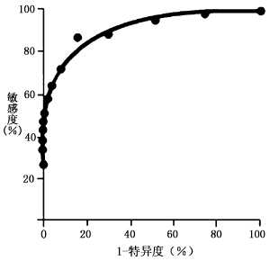 又称“相对工作特征曲线”或“ROC曲线”。是评价一项诊断或筛检试验方法鉴别健康人与病人的能力的一种图示法(下图),反映该种试验方法的敏感度*与特异度*的关系。曲线图的纵坐标是敏感度,横坐标是1-特异度。图示敏感度升高时,特异度降低。ROC曲线也可用以说明一种新的试验方法是否优于一种传统的试验方法。