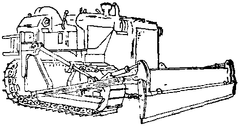 | 释义 | 推耙机 推耙机在履带行走底盘前方装有一块推耙板,以推、耙方式堆集散货的清舱专用机械。工作时,放下推耙板,或向前推,或向后耙,把舱底的散货推耙至舱口下堆集起来,以便于卸船机进行卸船作业。它是一种采用较多的散货清舱机械。如图示。