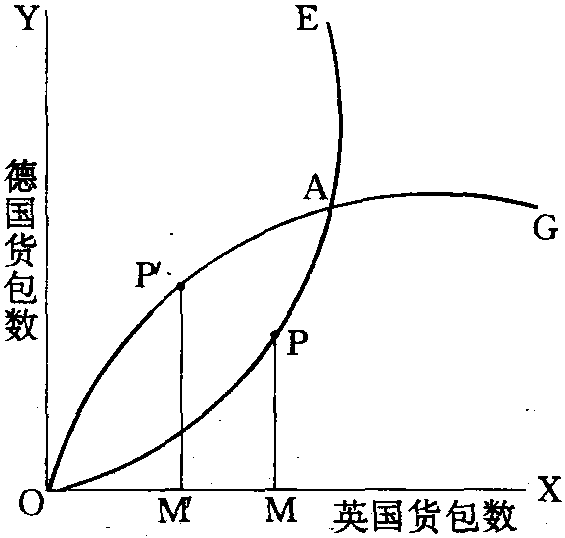 | 释义 | 提供曲线Offer Curve亦称“供应条件曲线”,或称“相互需求曲线”。由英国经济学家阿尔弗雷德·马歇尔和弗朗西斯·伊西德罗·艾奇沃斯提出,表明一个国家为了进口一定量的商品,必须向其他国家出口一定量的商品,即对应某一进口量愿意提供的出口量的轨迹。两个国家的提供曲线的交汇点所决定的价格,就是国际商品交换价格(交换比率)。提供曲线反映的是一国为了进口某一数量的商品而愿意出口的商品数量,即一个国家在不同的相对价格水平下所愿意进口和出口的商品数量。 提供曲线 提供曲线Offer Curve亦称“供应条件曲线”(Terms of Supply Curve)近代资产阶级国际贸易理论的一种分析工具。英国经济学家埃奇沃斯(Francis Ysidro Edgeworth,1845—1926)最先提出。如图所示,横轴(OX)代表英国可输出商品的包数,纵轴(OY)代表德国可输出商品的包数;OE线表示英国所要求的进行贸易的条件,OG线表示德国所要求的进行贸易的条件。OE与OG线就是提供曲线。若在OE线上P点向OX线垂线PM,则OM表示英国所要供给的商品数量,PM表示英国想要输入的德国商品数量;同样,在OG线上P′点作OX的垂线P′M′,则OM′表示德国想要输入的英国商品数量,P′M′表示德国所要供给的商品数量。在P与P′点均未达到均衡,不能决定两国的贸易条件。只有在OE与OG的交点A,国际贸易才能实现均衡,国际交换价值同时得到决定。提供曲线可以看成是供给曲线,也可以看成是需求曲线。作为供给曲线,表示按各种贸易条件,一国所愿提供出口商品的数量;作为需求曲线,表示在不同的贸易条件下,该国对进口商品的需求量。在市场经济中,供求力量会自动地使国际贸易实现均衡。提供曲线是对约翰·穆勒的相互需求论的进一步说明。