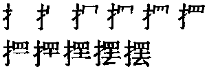 【提示】在汉字简化前,表示 “来回摇动” 等义时,用 “擺”; 表示 “衣服、裙子等的最下面的部分(下摆)” 等义时,用“襬”。