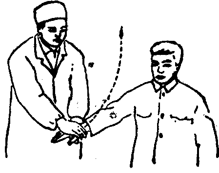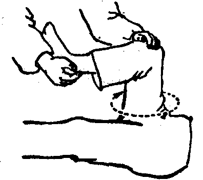 | 释义 | 摇法❶刺法名。指出针时左右摇动针体的方法。《针经指南》:“摇者,凡泻时欲出针,必须动摇而出是也。”其摇而出针,开大针孔,以泄邪气,泻法用之。本法源于《灵枢·官能》:“摇大其穴。” 摇法❶推拿手法。摇动关节,使之灵活。常用于四肢及颈腰部关节。有调和气血、滑利关节等作用。见《保持推拿法》。 摇法推拿手法名。使关节作被动的环转活动,是活动关节的一种方法。操作时用力要稳,摇动方向及幅度须在患者生理许可范围内进行,由小到大。有调和气血,滑利关节等作用。 摇法yáofǎ❶推拿手法。摇动关节,使之灵活。《保赤推拿法》: “摇者, 或于儿头,或于儿手, 使之动也” (也可用于成人)。常用于四肢及颈腰部关节。有调和气血、滑利关节等作用。 摇法 摇法摇法是推拿常用手法之一。在隋、唐时,摇法被列为导引及自我按摩的一种常用方法;明、清以来,推拿治疗小儿疾病的复式操作法中多结合应用;近代,则较多地用于治疗运动器官的疾患。术者用一手握住(或扶住)被摇关节近端的肢体,另一手握住关节远端的肢体,作缓和回旋的转动。有人也称之为“运法”、“盘法”。摇法的动作要领是,动作要缓和,用力要稳,摇转幅度的大小,要根据病情适当掌握,同时必须注意被摇关节的生理活动范围,因势利导,适可而止。摇法可直接在人体上进行练习,根据人体各关节的生理活动范围,掌握各关节的摇动幅度。摇法具有舒筋活血,滑利关节,松解粘连,增强关节活动等作用。适用于颈腰部及四肢部,以治疗运动功能障碍、关节痠痛、屈伸不利等症。摇法在临床时,应用于不同部位有不同的操作方法。 图1 摇颈 摇肩 患者坐位。操作方式有三种: ❶肩部放松,屈肘。医者站于侧方,弓步势,上身略为前屈,用一手扶住肩关节上部,使其稳定,另一手托起患肢肘部,作顺时针或逆时针方向运转(图2-1)。 ❷患者上肢伸直。医者一手扶住其肩关节上部,另一手握住其手,作顺时针或逆时针方向运转(图2-2)。以上两式适用于肩关节活动障碍明显者。 ❸患者上肢自然下垂。医者站于侧方,丁字步,用一手握住患者腕部,另一手以掌背抵住患者的前臂部,将其上肢上举至160°幅度时,医者将掌背反过来用手握住其腕部,而原握住患者腕部的手向下滑移,扶按肩部,此时要停顿一下,两手协调用力,使患肢向后作大幅度运转(图2-3)。在由后向前作环转时,则动作相反。适用于肩关节活动已恢复到接近正常的患者。 ![]() 图2-1 托肘摇肩法 ![]() 图2-2 握手摇肩法 ![]() 图2-3 大幅度摇肩法 摇腰 患者坐位,腰部放松。医者站其后方,一手扶住其一侧腰部,另一手扶住对侧肩部,将患者的上身由左向右或由右向左作连续的前后左右俯仰侧弯,使腰部作环转动作。适用于腰部疼痛、活动不利等症。 摇髋 患者仰卧,髋膝微屈。医者站于侧方,用一手扶其膝部,另一手托住其足跟,两手协同使其髋关节屈曲到90°,然后作顺时针或逆时针方向的运转(图3)。适用于髋部伤筋痠痛、活动不利及腰腿痛等症。 ![]() 图3 摇髋 ![]() 图4 摇踝 摇踝 患者平卧,下肢自然伸直。医者位于其足后方,用一手握住踝部,另一手握住其足背前部,作环转摇动(图4)。常用于踝部伤筋、踝关节活动不利等症。 ☚ 揉法 扳法 ☛ 摇法yáo fǎrotating manipulation;shaking method |