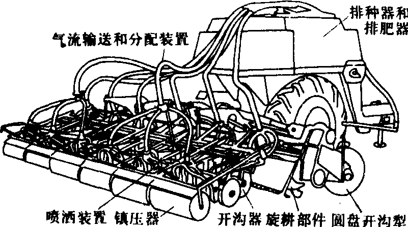 | 释义 | 播种机联合作业机integrated seeder and other working parts以播种机为主体并适当配置其它作业部件或机具,一次同时完成多项作业(如耕整地、播种、施肥、喷药、镇压、筑畦埂等)的联合机具。可减少机组在田间作业次数,缩短农艺作业周期,减少机组对土壤的压实次数;还可以充分利用大、中型拖拉机的功率,减少劳动消耗,比单项分段作业,可降低作业成本40~50%。