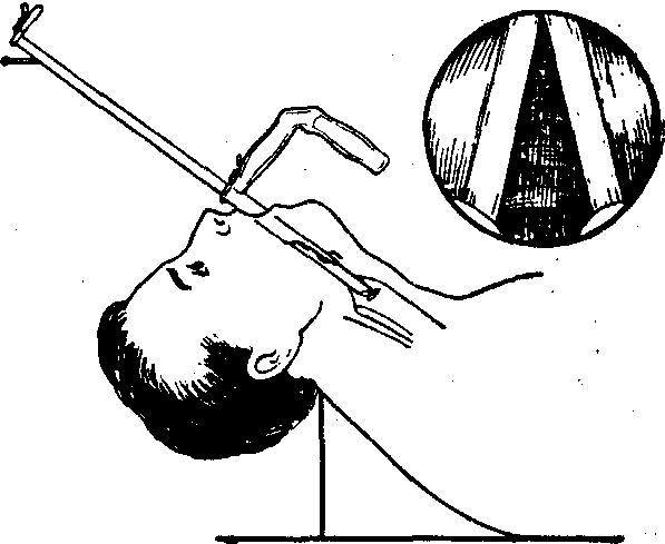 每一镜管必须备有两份灯心。以防检查时发生故障。电源及电线亦应准备两套。各种钳子和吸引器管应尽量备齐,尤其吸取分泌物的吸引管应多备数支。检查儿童或有呼吸困难患者应备有直接喉镜。 麻醉: 有局部麻醉和全身麻醉两种,但以局部麻醉为主。10岁以内儿童一般不宜用局部麻醉,以防中毒。 局部麻醉: 目前应用较广泛的麻醉剂有可卡因、丁卡因、赛罗卡因三种。以0.5~1%丁卡因效果较好。一般成人丁卡因总量不应超过0.05g,可卡因不超过0.2g,赛罗卡因不应超过200~400mg。对女性及瘦弱者应适量减少麻醉剂总量。麻醉方法有气管内滴入法、经环甲膜注入法、氧气喷雾吸入法、喉上神经注射麻醉法等,唯第一种最常用,且方便。具体操作为:以喷雾器将1%丁卡因喷入咽部,并逐渐向喉咽部喷入,共2~3次,最后用喉注射器在间接喉镜观察下把会厌软骨钩起,在病人深吸气时将药注入声门,患者即有咳嗽,隔1~2分钟再重复一次。注入总量为0.5%丁卡因2ml。 全身麻醉: 一般为静脉给药法,喉咽部再加用1 %丁卡因表面麻醉。 操作: 患者取仰卧垂头体位,床头与肩齐,枕骨结节离床面约10~15cm。助手坐在患者右侧,以张开的右手托起患者后上颈部,使颈尽量向前; 以左手放在患者头顶部托起头,使头尽量向后下转。 支气管镜送入法: 有经直接喉镜内送入法和支气管镜直接送入法。对已气管切开的患者可以经切开创口送入支气管镜。 ❶经直接喉镜内送入法。先用左手持直接喉镜,挑起会厌软骨,看清声门,然后将支气管镜经直接喉镜内送入气管,再把直接喉镜取下。此法因直接喉镜较宽大,使患者有一定痛苦,但优点是在直接喉镜下可以清楚地检查喉部,并因很快暴露声门而能正确地送入支气管镜,对有呼吸困难的患者可以即刻改善,如喉部有异物也可及时取出。对儿童患者因支气管镜内不易看清声门,必须采用此法。 ❷气管镜直接送入法。握住支气管镜在右手中指和食指中间,镜柄在拇指和食指中间;另一法为右手取握笔式握住管的后端,支气管镜由口腔正中或稍偏右进入,先看到会厌软骨,挑起软骨,然后看清左侧声带,将镜渐渐送入气管。管尖端通过声带时,在管内只能看到左侧声带。管口斜面向左,管柄向右,如此进入气管,不易损伤声带。支气管镜在气管内应保持正中位,见到前后左右各壁,若只看到一壁,则观察容易产生错误。到气管下端,看清隆凸,并应认清其角度,有无肿胀和溃疡等。先查健侧,后查患侧。支气管镜进入右侧支气管时,病人头稍左偏,管柄向右,以免伤及气管壁。