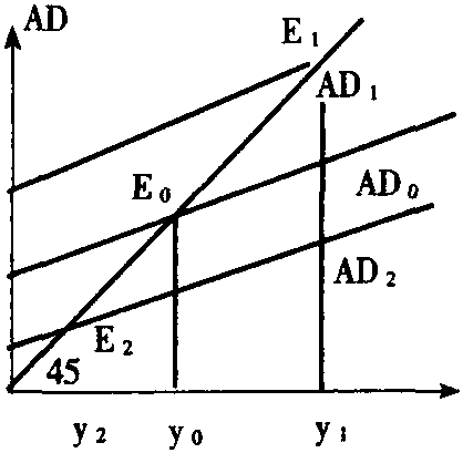 | 释义 | 收入-支出模型Income-expenditure model一种简单的凯恩斯的部门模型,是宏观经济分析的主要理论框架的一种简短表述,它表明国民收入的均衡水平是如何决定的。它分析的是假定总供给可以无限扩大,并给定价格水平和利率的条件下,总需求如何决定国民收入水平的大小及其变动。基本内容是:当总需求小于总供给时,非合意存货增加,由此引起国民收入减少,失业增加;当总需求大于总供给时,合意的存货减少,国民收入增加,失业减少。在总需求等于总供给时,非合意存货为零,从而决定了均衡的国民收入水平。所以这一模型被认为是总需求水平决定了均衡的国民收入水平。上图首先由萨缪尔森提出,故称为萨缪尔森交叉图。在图中,y代表国民收入,AD代表总需求,45°线上每一点都代表总需求等于总供给,即国民收入达到了均衡。当总需求为AD0时,AD0与45°线相交于E0,这时国民收入达到了均衡。如果总需求由AD0扩张为AD1时,均衡的国民收入为y1,y1>y0,所以均衡的国民收入由于总需求的增加而增加;反过来也是如此,当总需求缩减为AD2时,均衡的国民收入为y2,y2 收入-支出模型 收入-支出模型income-expenditure model简单的凯恩斯主义国民收入决定模型。它在假定价格水平既定和总供给可以无限扩大条件下说明总需求如何决定国民收入水平。根据这一模型,实际的总需求是等于总供给的需求水平,但实际的总需求并不能总等于计划的总需求。如果计划的总需求小于实际的总需求,则非合意的存货增加,由此引起生产和国民收入减少;如果计划的总需求大于实际的总需求,则合意的存货减少,由此引起生产和国民收入增加;如果实际的总需求等于计划的总需求,则国民收入达到均衡的国民收入水平。因此,决定均衡的国民收入水平的是计划的总需求。附图横轴代表国民收入,纵轴代表实际总需求,45°线上每一点表示实际总需求等于总供给。当计划的总需求曲线为AD0时,AD0与45°线相交于E点,这就决定了均衡的国民收入水平为YO。这个图最早是由美国经济学家P.萨缪尔森根据凯恩斯的国民收入决定理论提出来的,又称“萨缪尔森交叉图”(Samuelson Cross)。这一模型强调了总需求对国民收入水平的决定作用,并在此基础上可以进一步说明当总需求不足时,存在失业的可能性。但这一模型也有一些缺点,其中主要是:第一,没有说明总供给对均衡国民收入决定的作用。第二,没有分析货币与利率对国民收入决定的作用。第三,没有说明价格水平的决定。因此,经济学家们在这一模型的基础上提出了考虑到货币与利率时国民收入决定的“IS-LM模型”,以及考虑到总需求与总供给时国民收入与价格水平决定的“总需求-总供给模型”。参见“总需求-总供给模型”、“IS-LM模型”。