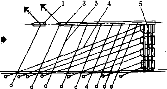 硬吊顺河绠 1.防护漂头; 2.纵漂; 3.正向腰绳; 4.横向绠绳; 5.横向绠漂 软吊顺河绠 用于通航和有鱼类回游的河川。多设在水深、河面宽阔的缓弯河段凹岸侧,河道设计断面平均流速 一般不超过2.5米/秒。中国山区流送河川因流速较高,这种类型的工程已少采用。软吊顺河绠的制作、安装、维修均较硬吊顺河绠复杂,到材期间也需进行以绠绳调整为主的管理工作。因横向部分及纵向部分的各个绠节分段承力,受力较明确,有利于分析计算。软吊顺河绠纵向部分包括漂浮支座、纵向绠漂、纵向绠绳、正向腰绳、水下锚索(或反向腰绳);横向部分包括横向绠漂、横向绠绳和放木门。绠绳和腰绳用钢丝绳。当流速大于1.75米/秒时,绠绳需采用由上下支和吊索构成的网状结构。漂浮支座和纵横向绠漂有木结构、钢结构和钢筋混凝土薄壁箱型结构。岸上支座多用钢筋混凝土整体浇铸的或因框架填充石料构成的重力式结构;简易工程也采用木石笼结构。河底锚座则采用金属锚或钢筋混凝土沉箱式锚座。当用固定型的河床墩座取代纵向漂浮支座时,则称为河床支座式软吊顺河绠。 横河绠 在苏联、加拿大和北欧各国非通航单漂流送河川上应用较多。中国因山区河川流速较高,仅有数座置于岔河中的横河绠。横河绠河道断面平均流速不宜超过3.5米/秒,相应于该流速的河宽不得超过150米。绠址宜选在河道逐渐收缩,且其上游有弯道的河段。这样可使绠存木垛压力作用于河岸,从而减少工程受力。横河绠比同规模的顺河绠投资少,管理较方便。横河绠由绠漂、绠绳、放木门及岸上支座构成,其绠漂结构、绠绳布置及岸上支座型式与软吊顺河绠横向部分相似。此外还有斜河绠和河床支座式横河绠。斜河绠结构与横河绠相同,但工程基线与水流轴线斜交。当河道一岸地质条件不好,易受冲刷时方采用这种布置方式。河床支座式横河绠是在河床的同一横轴线上修筑几座固定型的墩座,各墩座间设置与横河绠结构相同的漂浮部分。只有当河道水面宽阔、河床地质条件好时,方可选用这种型式。 拦木架 在单漂流送小河河口设置的小型收漂工程。工程河段水深一般不超过10米,设计断面平均流速3~4米/秒,对河床地质条件要求较高,宜为坚硬的岩基。年收贮量随到材量而异,可达5 000~10 000立方米。到材即收,年内可周转数次。拦木架管理简便、维修量少,但木材出栏困难。拦木架由边墩、中间墩座(或中间排架)、横梁、拦木栅、放木门和工作桥组成。在一些拦木架的下游设有低壅水坝,以减少工程受力和方便木材出栏。边墩和中间墩座多为浆砌石或混凝土结构,排架为钢筋混凝土整体浇筑。也有少量简易工程,采用木及木石笼结构。 |