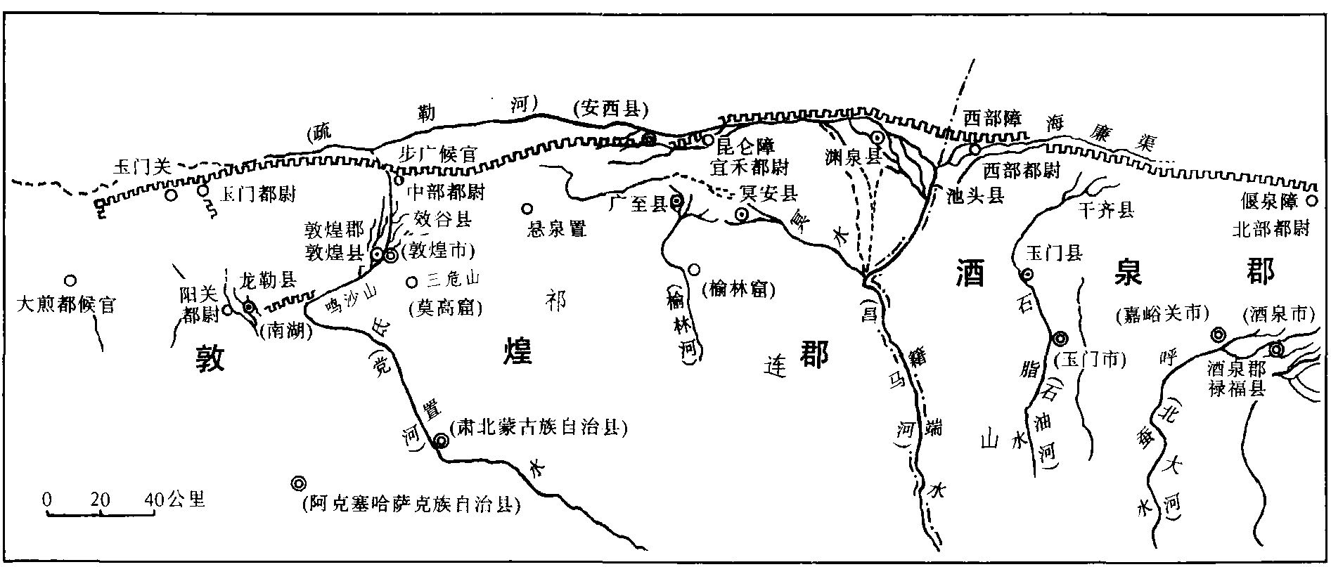 西汉敦煌郡示意图