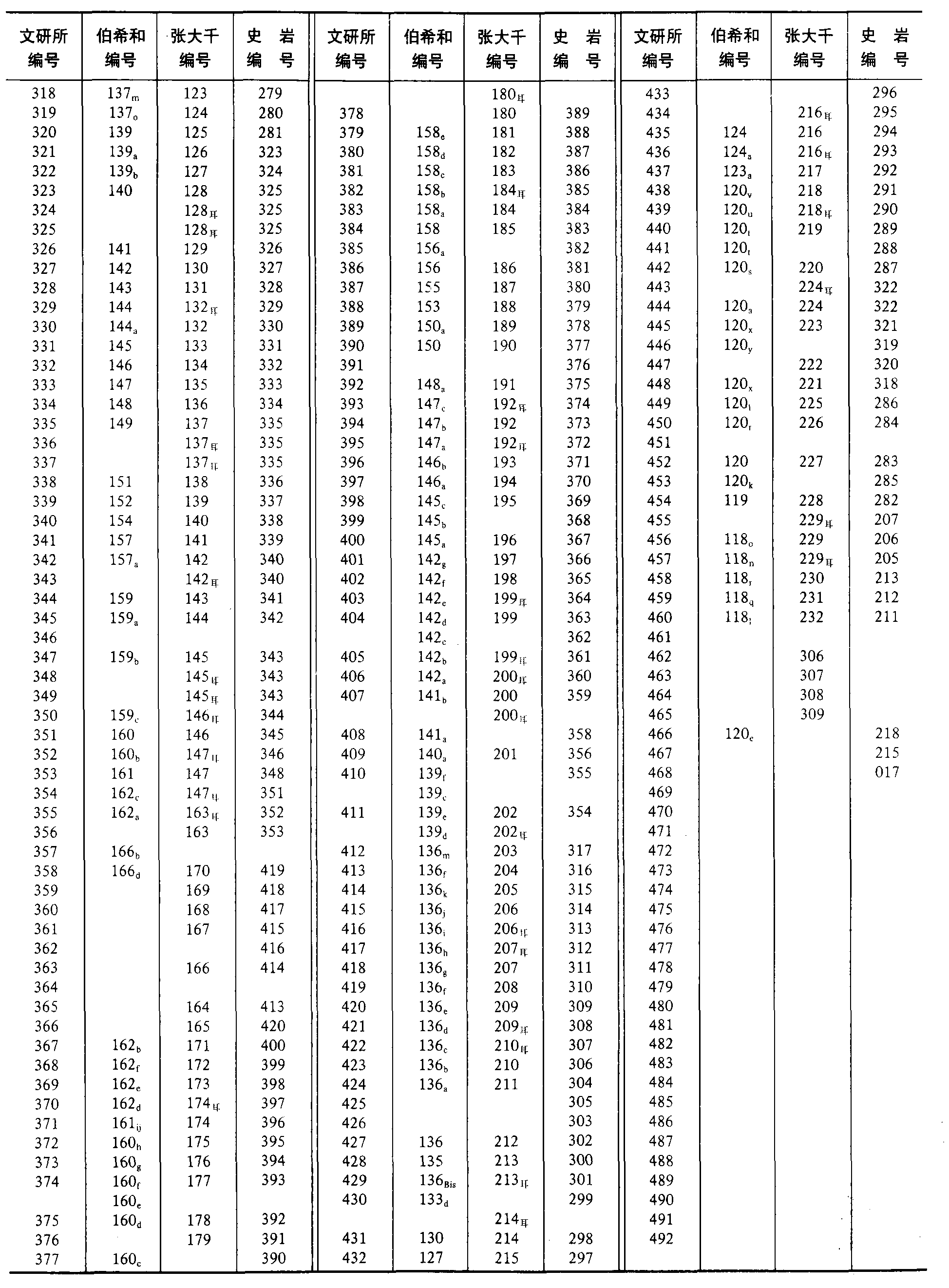 莫高窟石窟编号对照表