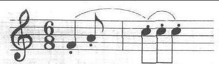 指用以表示前后音断开的符号。根据断音的不同程度可分为三种(1)断奏或跳音,表示演奏时,其音时值约占原来音符时值的一半; 标记为符头一方的小圆点。(2)特断音或特顿音,表示演奏时,其音时值约占原来音符时值的四分之一,标记为符头一方的锥形小三角。(3)连断音或半顿音,表示演奏时,其音时值约占原来时值的四分之三,标记为符头一方的小圆点加连线。例:跳音:特顿间:连断音: