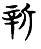 【提示】左下的 “朩”,第二笔是竖钩,末笔是点; 第三笔宋体是撇,楷体是点。 *新xīn13画 斤部 (1) 刚出现的或刚经验到的(与“旧”或“老”相对): ~书|~潮|~风|~产品|~工作|~老交替。 (2) 变新;使变新: 焕然一~|改过自~。 (3) 没有用过的;刚用不久的(与“旧”相对): ~茶具|崭~。 (4) 新人或新事物: 迎~|尝~|~陈代谢|除旧布~。 (5) 正在行婚礼的或结婚不久的: ~人|~郎~娘|~女婿|~媳妇。 (6) 最近;刚: ~到了一批货|~来的大学生|这双鞋是~买的。 新 ☚ 斷 斗部 ☛ 新xīn甲骨文从斤(即斧子)从辛,或木上加辛,辛也象树杈形。象斧头砍伐树木状。即砍伐树木义。才砍伐的树木当然是新的。引申为新旧的新。又是薪(本是柴火、劈(pǐ)柴义)的本字。指刚有的或刚经历到的。如:新办法|万象更新|新事物。又指没有用过的。如:新书|新房子。组词如:自新。又指新近,刚才。如:这是新买的|他是新来的。引申指称结婚时的人或物。如:新郎|新房。 新★常◎常