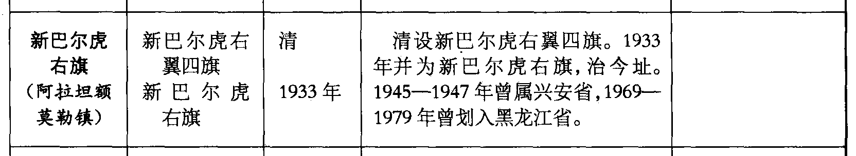 新巴尔虎右旗(阿拉坦额莫勒镇)新巴尔虎右翼四旗新巴尔虎右旗清1933年清设新巴尔虎右翼四旗。1933年并为新巴尔虎右旗,治今址。1945—1947年曾属兴安省,1969—1979年曾划入黑龙江省。