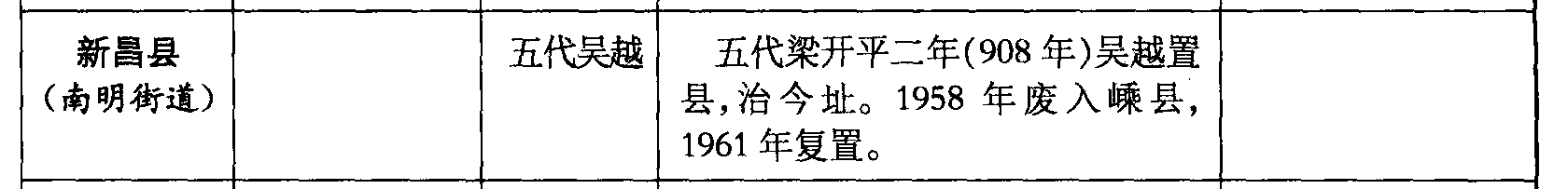 新昌县(南明街道)五代吴越五代梁开平二年(908年)吴越置县,治今址。1958年废入嵊县,1961年复置。