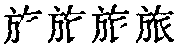 旅 旅古地名。古密须国境内。《大雅·皇矣》五章:“以按徂旅,以笃于周祜,以对于天下。”毛《传》:“按,止也。旅,地名也。对,遂也。”孔《疏》:“以止此密人往旅地之寇,密人侵共,复往侵旅,故兴兵以止其寇也,所以必伐密者,以厚其周之祜福,以遂于天下之心。” 陈奂《传疏》: “《韩子·难二》云: ‘文王伐盂,克莒,举丰。’克莒,即诗之‘徂旅’也。旅为密须国之地名。以按徂旅,正是伐密须中事也。”旅,今甘肃灵宝县境内。 ☚ 旄丘 衮职 ☛ 旅读音l·ü(ˇ),为ü韵目,属u—ü韵部。力举切,上,语韵。 ❶旅行。 ❷军队的编制单位,一般在“师”与“团”之间。 ❸泛指军队。 上一条: 儢 下一条: 膂 旅律lǚ❶次序;末尾。例:名次排~在后,快到后尾了。 ❍ 队排~到后尾去了。 ❷众多。例:人多~不可得罪,小心犯了众迕! ❸道路。例:路~远,一天走~不到。 ❹养。例:养~儿女,将他们抓~大。 ❍ 他养~了几个憨狗,专门咬 (shǐ)人,给人提意见。 《汉语大字典》:“旅,次序。”《方言》:“旅,末也。”《尔雅》:“旅,众也。”又“旅,途也。”又“旅,养也。” 旅〔lu〕 旅店 〔lu dian〕 jib janb. 旅{}四5016①名子弟,后代。古方言。《方言》第十三:「裔、~,末也。」清钱绎笺疏:「《诗・周颂・载芟篇》:『侯亚侯~。』毛传云:『~,子弟也。』…《周礼・天官・宰夫》云:『使其~、师、有司而治之。』注云:『冢宰,下士也。子弟谓之~,下士亦谓之~,义与裔胄同也。』」②介从。中原官话。河南永城。③介沿着。胶辽官话。山东安丘〖 〗。~着河往东走,就到了家了。   旅lǚ❶军队编制单位,在师以下,团或营以上。 ❷泛指军队 △ 军~作家|劲~。 ❸离家在外地 △ ~游|~居。 【注意】右下不要写成“氏”。 旅❶出门在外;出外游览:~客︱~伴︱~途︱~程︱~行︱~游︱~居︱~次︱~店︱~馆︱~舍︱~社︱~邸(di)︱~费︱行~︱商~︱羁(ji)~︱逆~。 ❷军队的编制单位,在师之下,团之上。 ❸泛指军队:军~︱劲(jing)~。 ❹一同:~进~退。 旅lǚ❶ 在外地做客,旅行:商旅│旅客│旅途。 ❷ 军队的一级编制,上隶于师,下辖若干团。 ❸ 指军队:军旅│师旅。 旅见[羇旅][易旅] 旅lǚ❶众。《左传·昭公三年》:“敢烦里旅。”杜预注:“旅,众也。”《九叹·离世》:“谗夫党旅其以兹故兮。” ❷客。《周易·复》:“先王以至日闭关,商旅不行。”陆德明释文:“郑(玄)曰:‘资货而行曰商;旅,客也。”《九辩》:“廓落兮羁旅而无友生。” 旅lu旅伴 旅程 旅店 旅费 旅馆 旅居 旅客 旅社 旅舍 旅途 旅行 旅游 旅长 羁旅1 劲旅 军旅 商旅 行(xing)旅2 旅行社 旅行团 旅游区 旅游鞋 旅游业 旅进旅退3 旅行结婚 旅游环境 旅游经济 旅游农业 旅游商品 旅游文化 旅游资源 生态旅游 强兵劲旅 旅游黄金周 旅lǚ旅lǚ军队编制单位,在师和团(或营)之间。1915年朱执信《讨龙之役报告书》:“潮州由邓君委邓文辉(前江西旅长)、谢崧生两君办理。” 旅❶衆也。《詩經·小雅·采芑》: “顯允方叔,伐鼓淵淵,振旅闐闐。” 鄭玄箋:“旅,衆也。” 《詩經·魯頌·閟宫》: “敦商之旅,克咸厥功。” 鄭玄箋: “旅,衆。”《周禮·天官·冢宰》: “治官之屬: 大宰卿一人,小宰中大夫二人,宰夫下大夫四人,上士八人,中士十有六人,旅下士三十二人。” 鄭玄注: “旅,衆也。” 《周禮·天官·掌次》: “凡祭祀,張其旅幕。” 鄭玄注: “旅,衆也。” 《周禮·夏官·司士》: “孤卿特揖大夫,以其等旅揖。” 鄭玄注: “旅,衆也。” 《儀禮·士冠禮》:“筮人還東面,旅占卒,進告吉。” 鄭玄注: “旅,衆也。” 《儀禮·燕禮》: “尊士旅食于門西。” 鄭玄注: “旅,衆也。” 《儀禮·大射》: “尊士旅食于西鑮之南北面。”鄭玄注: “旅,衆也。” 《儀禮·士喪禮》:“卒筮執卦,以示命筮者,命筮者視反之,東面旅占卒。” 鄭玄注: “旅,衆也。” 《禮記·曾子問》: “曾子問曰: 諸侯旅見天子,入門,不得終禮,廢者幾。” 鄭玄注:“旅,衆也。” 《禮記·郊特牲》: “旅幣無方,所以别土地之宜,而節遠邇之期也。”鄭玄注: “旅,衆也。” ❷五百人爲旅。《詩經·小雅·黍苗》: “我徒我御,我師我旅。”鄭玄箋: “五百人爲旅,五旅爲師。” 《詩經·大雅·皇矣》: “王赫斯怒,爰整其旅。” 毛傳: “旅,地名也。” 鄭玄箋: “五百人爲旅。” 《論語·衛靈公》:“軍旅之事,未之學也。” 鄭玄注: “萬二千五百人爲軍,五百人爲旅也。軍旅末事,本未立則不可教以末事也。” (《玉函山房輯佚書》) 《論語·衛靈公》: “軍旅之事,未之學也。” 鄭玄注: “五百人爲旅。”(《通德堂經解》) 《論語·衛靈公》: “軍旅之事,未之學也。” 鄭玄注: “五百人爲旅也。” (《鄭氏佚書》) ❸國有故而祭曰旅。《周禮·天官·掌次》: “王大旅上帝,則張氊案,設皇邸。” 鄭玄注: “大旅上帝,祭天於圓丘。國有故而祭亦曰旅,此以旅見祀也。” 《周禮·春官·司尊彝》:“大喪,存尊彝,大故亦如之。” 鄭玄注:“旅者,國有大故之祭也。” 《周禮·春官·眡瞭》: “大喪,廞樂器,大旅亦如之。” 鄭玄注: “旅,非常祭,於時乃興。” ❹猶“處” 也。《周禮·地官·司徒》:“旅師: 中士四人,下士八人,府二人,史四人,胥八人,徒八十人。” 鄭玄注: “主斂縣師所徵野之賦穀者也。旅,猶處也。” ❺陳也。《周禮·春官·大宗伯》: “國有大故,則旅上帝及四望。” 鄭玄注: “旅,陳也