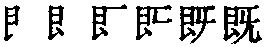 ❸ 一如既往 既既,甲骨文作  ,金文作 ,小篆作 。 象人屈膝跪坐在食器旁,而以 “口”形向外爲特寫,以已經吃完的意象表示已然之義,隸定作“既”。卜辭或讀 “餼”,祭名。銘文或用已經、完畢、全部等義。提示: 若人面對食器則爲 “即”,就也。 楚簡帛文作 ,略有訛變。秦簡牘文作 ,古隸典型。參見149.即字條。 既jì“既”的右边是饱食了的人,掉转头准备离开。本义为进餐结束了。引申为动作完成。作声符生成的字有: jì 暨(暨南大学) jiù 厩(马厩) gài 概(大概) 溉(灌溉) kǎi 慨(慷慨) 相关链接 “概”与“㮣”同,“平斗斛木也。”属会意字。本是块木板,用来把堆起来的米饭或量具中米粟之类谷物刮平。《韩非子·外储说》:“㮣者,平量者也。”公共食堂卖饭时还用此工具。引申为“平”。“一概”,有如今天所谓之“一刀切”。溉、慨系以“概”(省)为声符。 既 甲骨文; 金文; 篆jì[豆(飯食,意符)+旡(吃過轉臉,意符)→既(《説文》:“既,小食也。從皀(jí)旡(jì)聲。《論語》曰:‘不使勝食既。’”既:動作已經完成〈既往不咎、既而〉;已經〈既成事實、既定〉。)] 《詩經·邶風·谷風》:“既生既育,比予於毒。”(日子已經過得這麼好,爲何還要把我當毒草。) [春秋] 左丘明《左傳·桓公三年》:“秋七月壬辰朔,日有食之,既。”(記公元前709年7月17日的日全食。今人推算結果,反證《左傳》記録的正確,憑當時的天文知識是偽造不起來的。) 《論語·季氏》:“既來之,則安之。”(既然來到這裏,你就要把心安定下來。) 既旣; jì(9画)