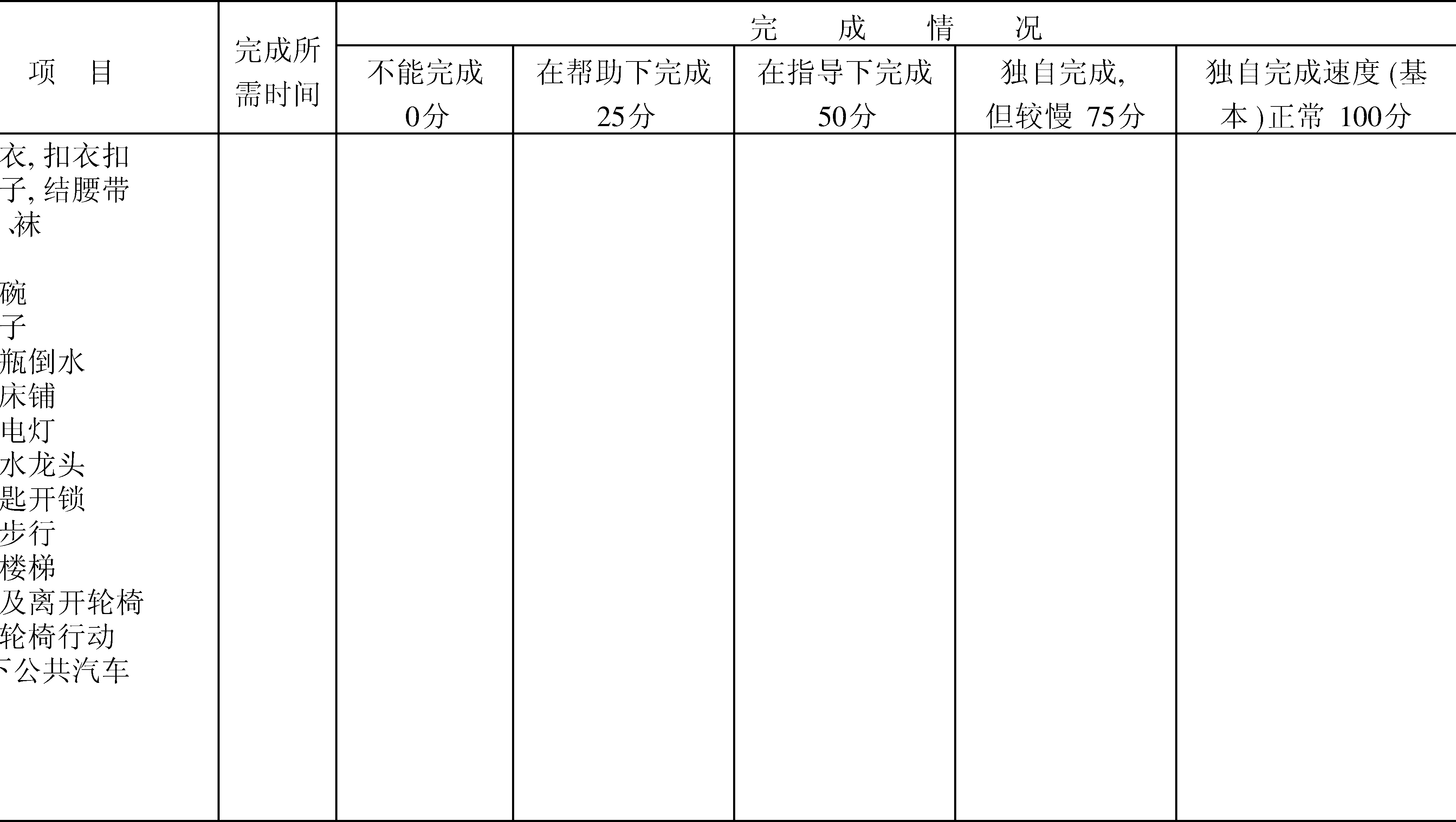 日常生活活动能力测定表