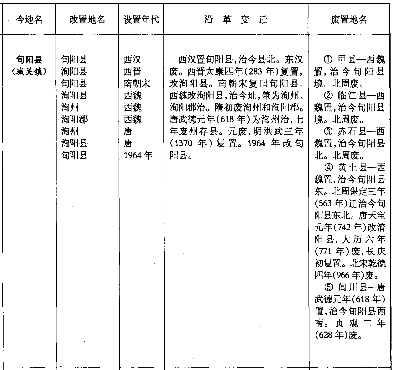 ❹ 黄土县—西魏置,治今旬阳县东。北周保定三年(563年)迁治今旬阳县东北。唐天宝元年(742年)改淯阳县,大历六年(771年)废,长庆初复置。北宋乾德四年(966年)废。