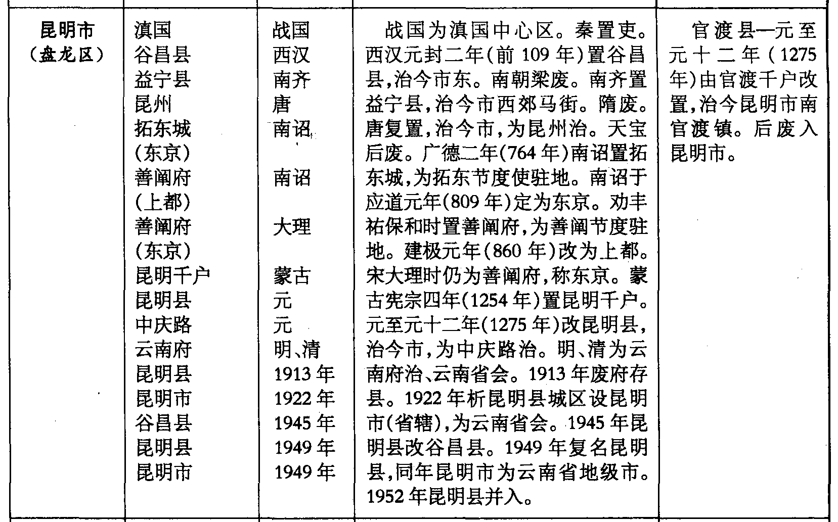 官渡县—元至元十二年(1275年)由官渡千户改置,治今昆明市南官渡镇。后废入昆明市。
