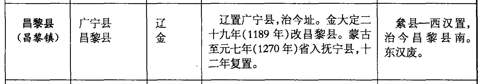 昌黎县(昌黎镇)广宁县昌黎县辽金辽置广宁县,治今址。金大定二十九年(1189年)改昌黎县。蒙古至元七年(1270年)省入抚宁县,十二年复置。絫县—西汉置,治今昌黎县南。东汉废。