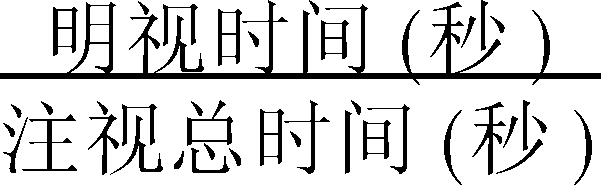 指明视时间与注视时间之比。眼能辨清细小对象的时间称明视时间。由于注意力不集中,或视力和对比感度等视觉机能减退,则明视时间缩短,而非明视时间增加。一般用来检查学习和工作效率以及疲劳的程度。