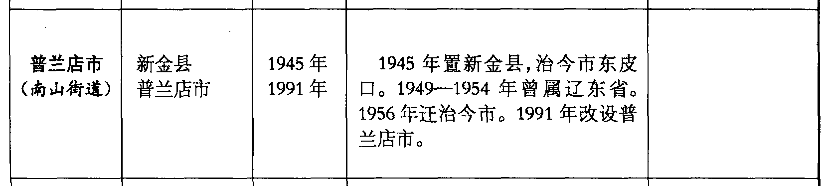 普兰店市(南山街道)新金县普兰店市1945年1991年1945年置新金县,治今市东皮口。1949—1954年曾属辽东省。1956年迁治今市。1991年改设普兰店市。