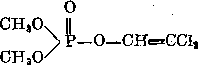 图3 敌百虫 敌敌畏 具有熏蒸、胃毒和触杀作用,易分解,残效期短。化学名O,O-二甲基-O-(2,2二氯乙烯基)磷酸酯,分子式(CH3O)2P(O)OCHCCl2,结构式见图4,分子量220.98。纯品为无色油状液体,微带芳香味,工业品为黄色油状。急性毒性属中等,经口LD50(mg/kg体重):大鼠雄性73~80,雌性56。世界卫生组织规定ADI为0.004。各类食品允许残留限量(mg/kg):稻谷类、花生2,新鲜菠菜0.5,新鲜水果及其他0.1,禽、畜肉、蛋0.05,全脂奶粉0.02。